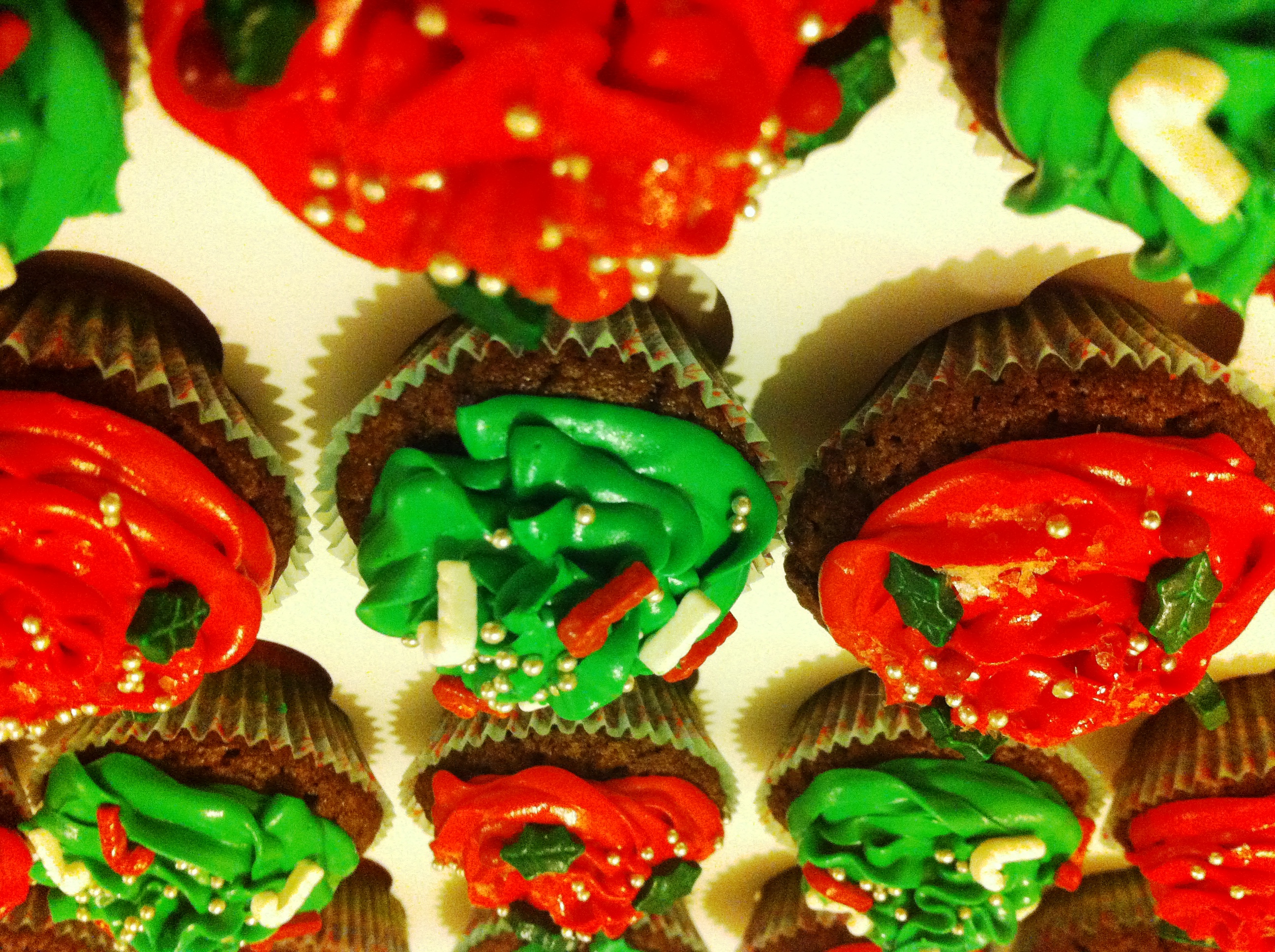 Para despedirnos, les preparé unos mini cupcakes de chocolate de Navidad, por eso de que ya empieza a notarse el espíritu navideño en el ambiente.