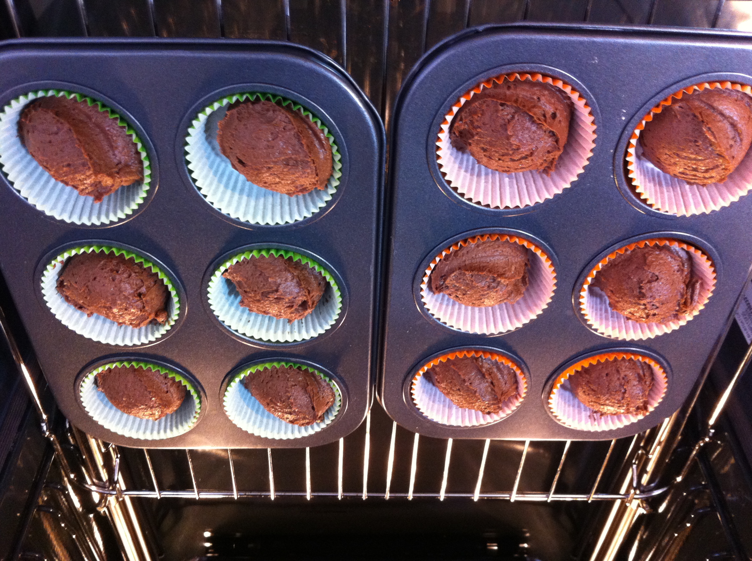 Vertemos la masa en los moldes y horneamos durante 18 minutos.