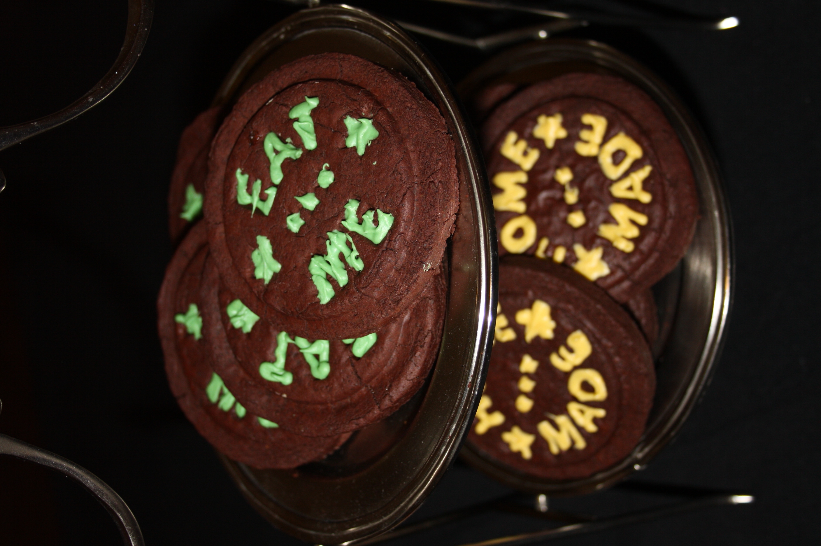 Yo he rellenado los textos de los sellos con chocolate blanco teñido, quedan mas coloridas y los mensajes más visuales!