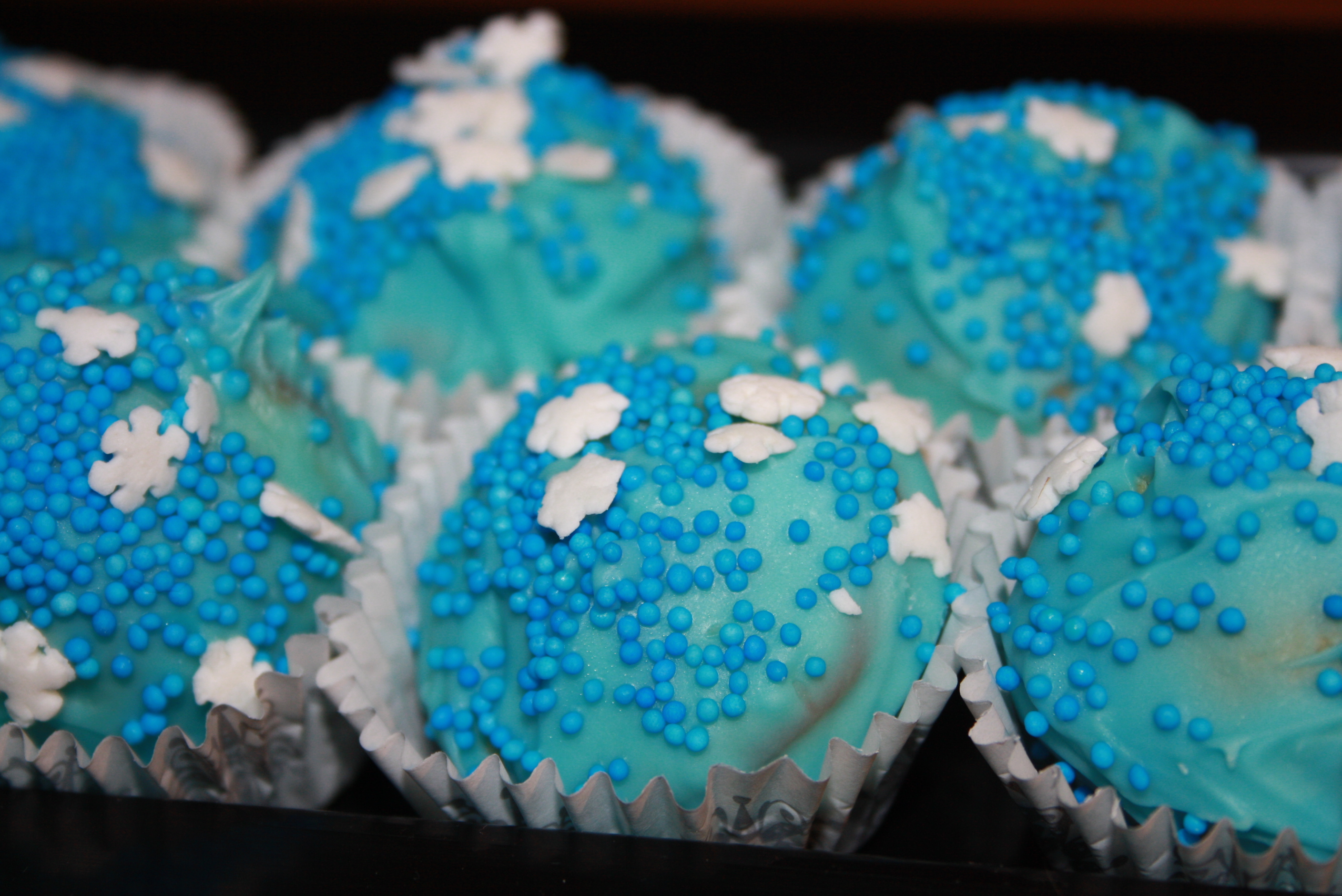 Bañamos las bolas en el chocolate teñido, las ponemos en cápsulas para bombones… decoramos y dejamos enfriar… y a disfrutar!!