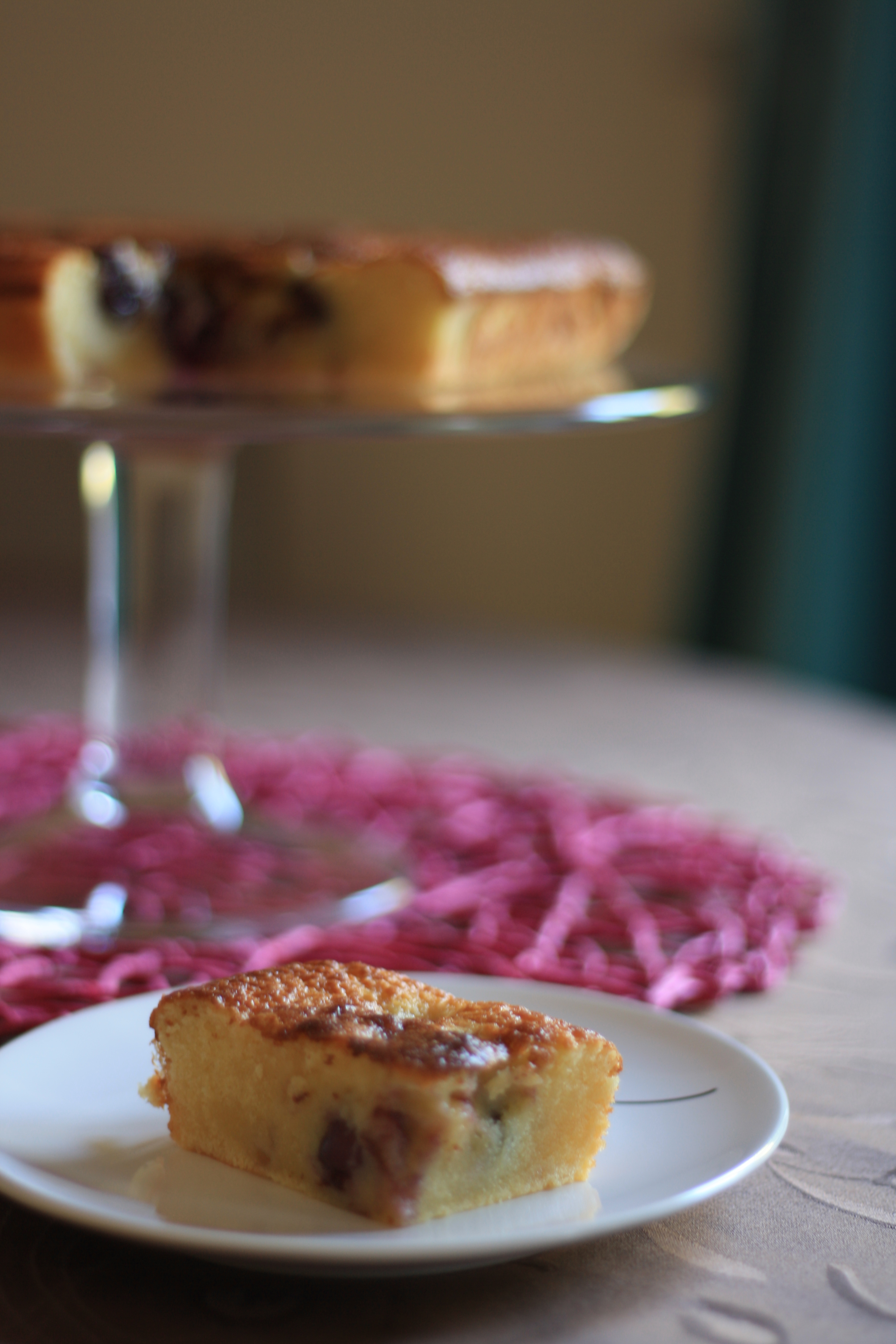 Añadimos las cerezas y mezclamos bien. Vertemos en el molde y horneamos a 180ºC durante unos 15 minutos.