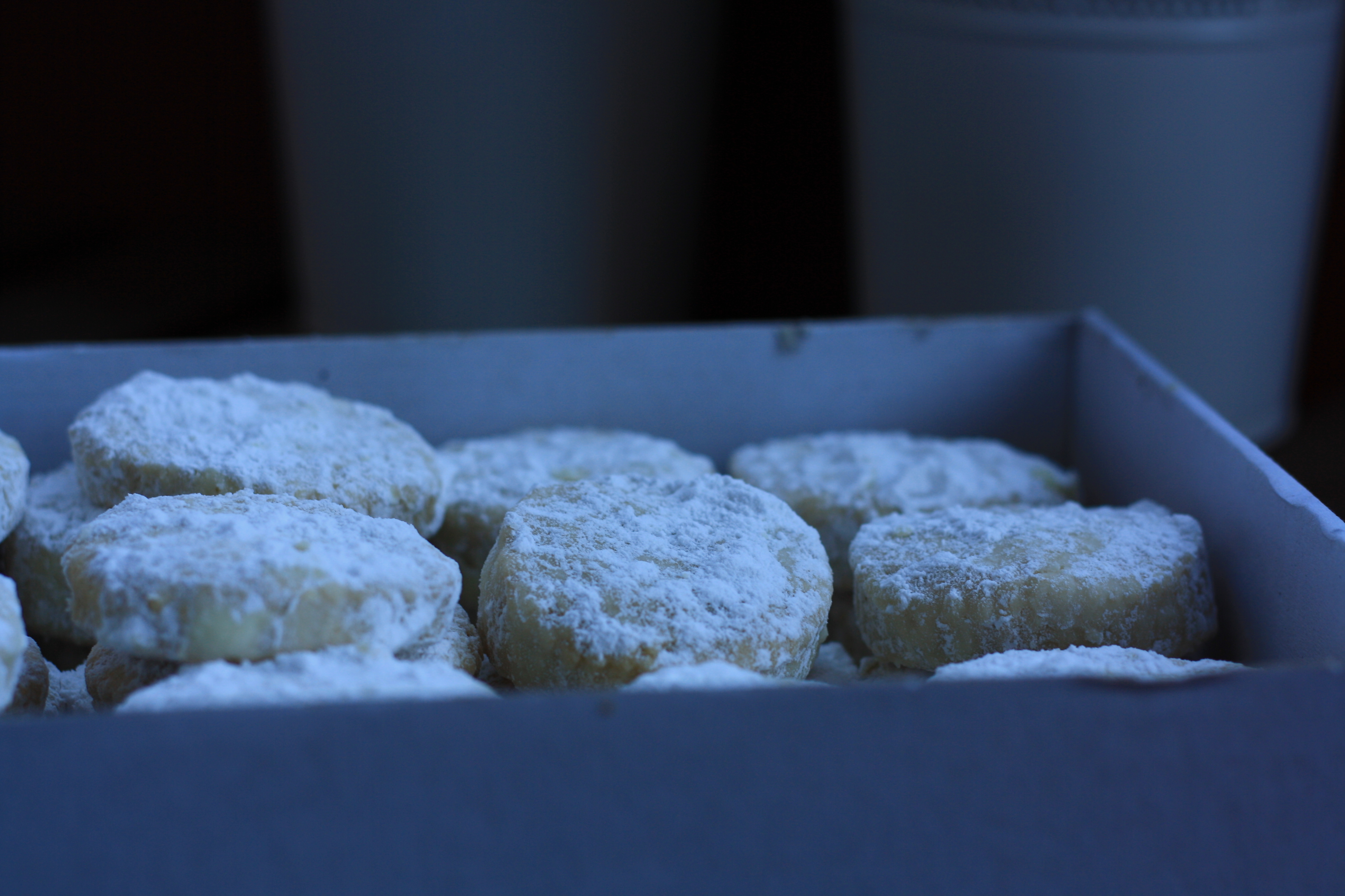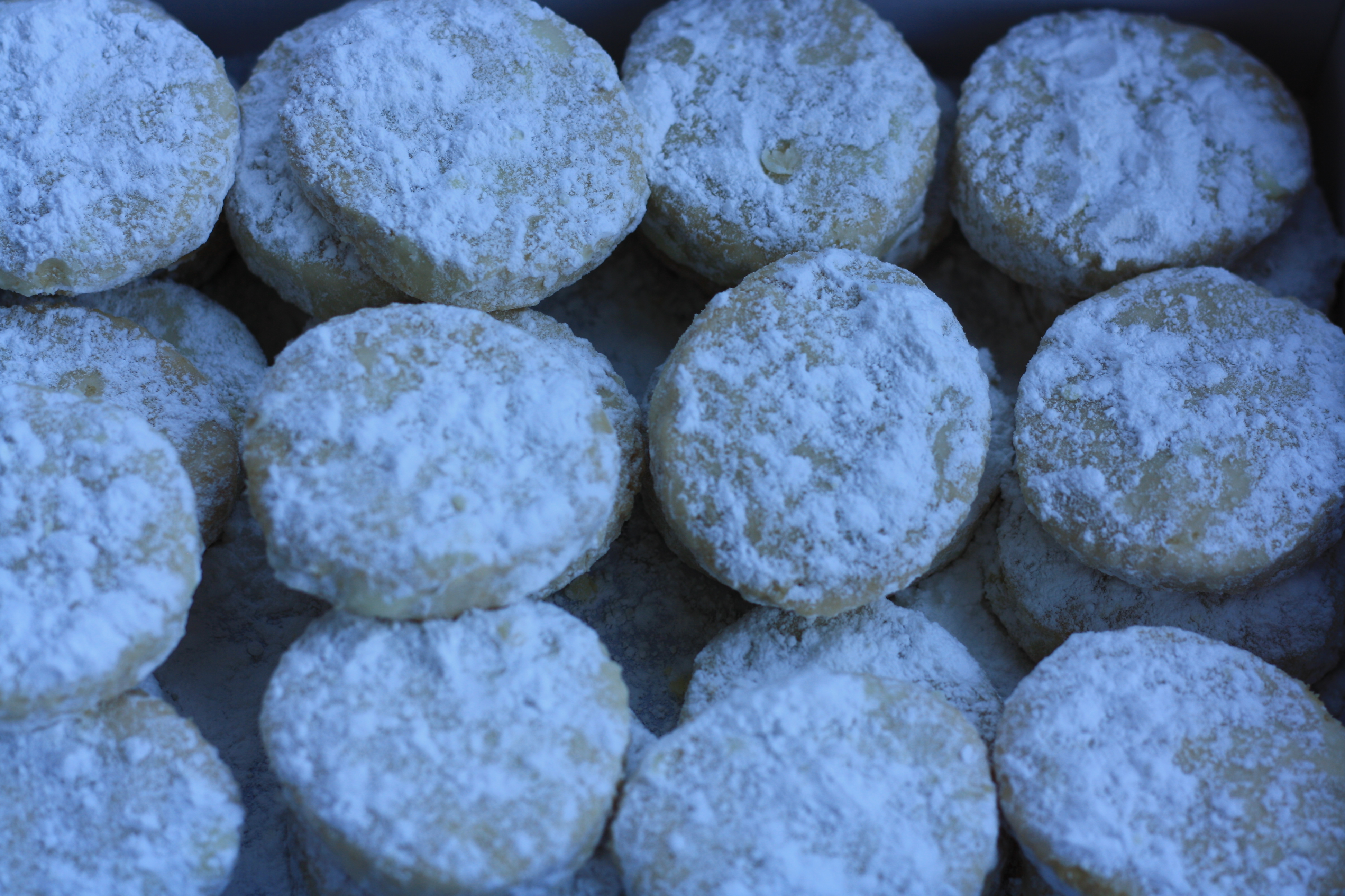 Nada más sacarlos, yo los rebocé con azúcar glass y los dejé enfriar. Así conseguimos que se quede bien pegadito el azúcar glass a las pastas.