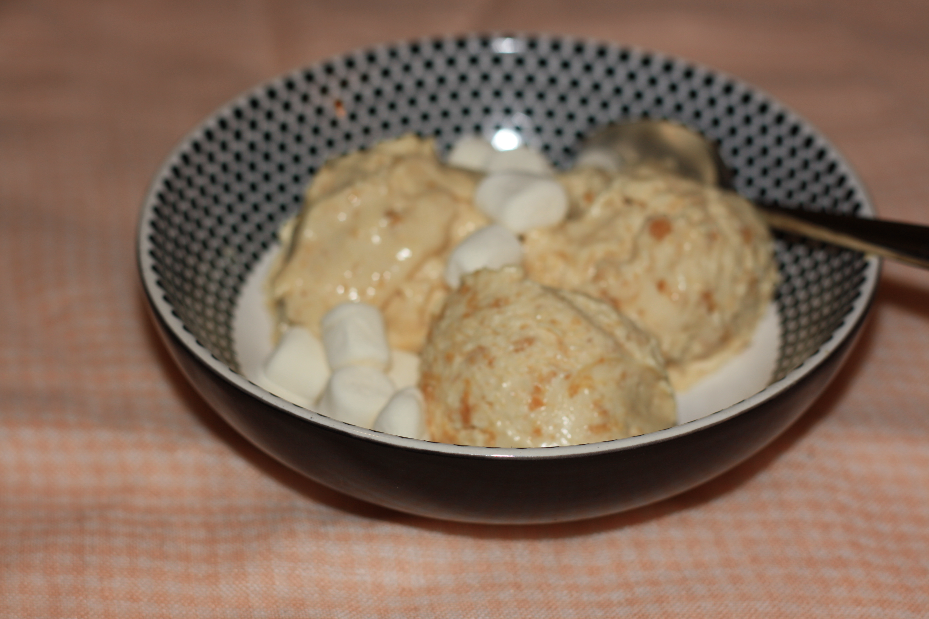 Y encima, para remate, el otro día me dio por hacer helado para celebrar la vuelta al trabajo. Sí señores, nada más y nada menos que un ligerito helado con su nata, su queso, vamos, una delicia de esas que van directas al michelín.