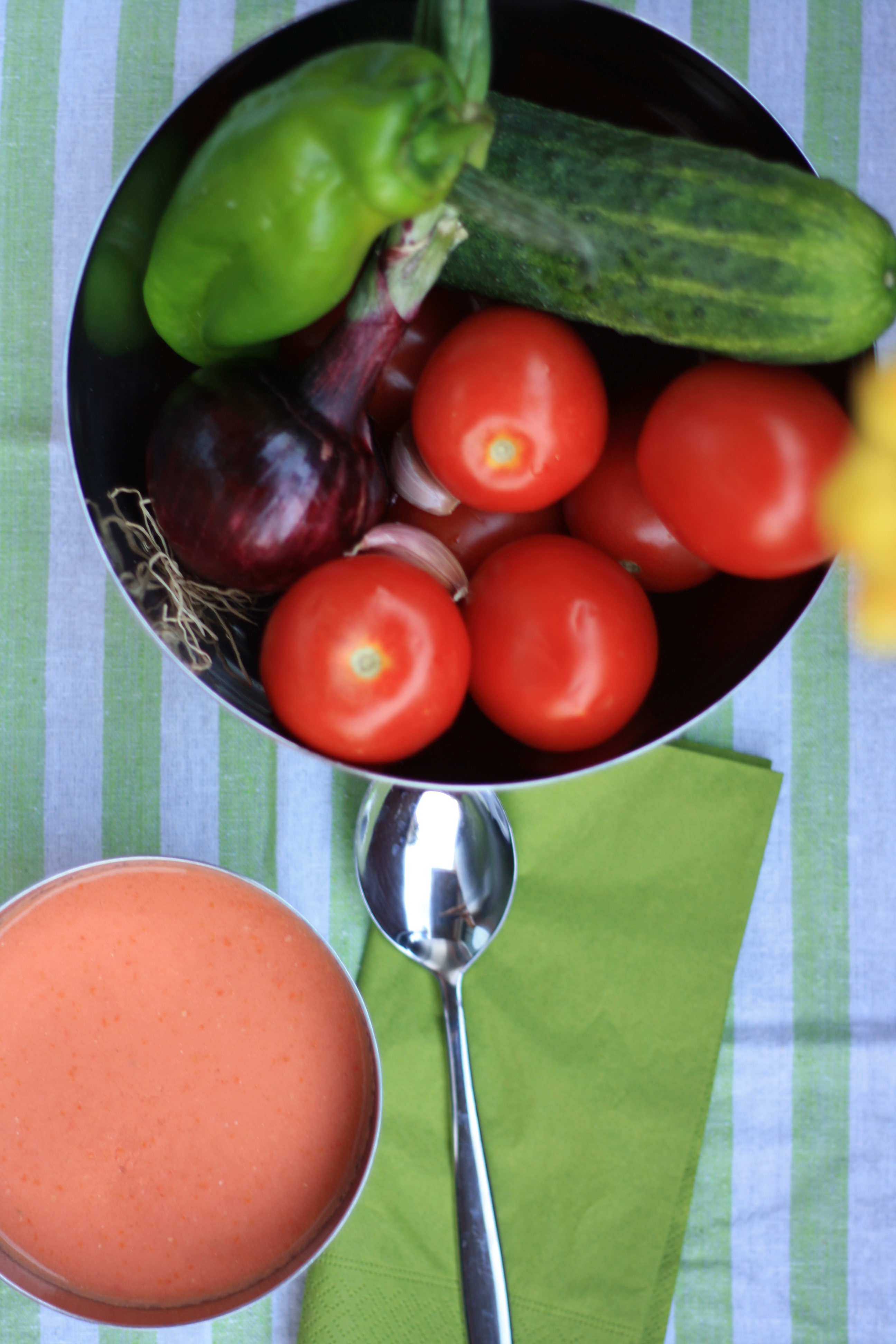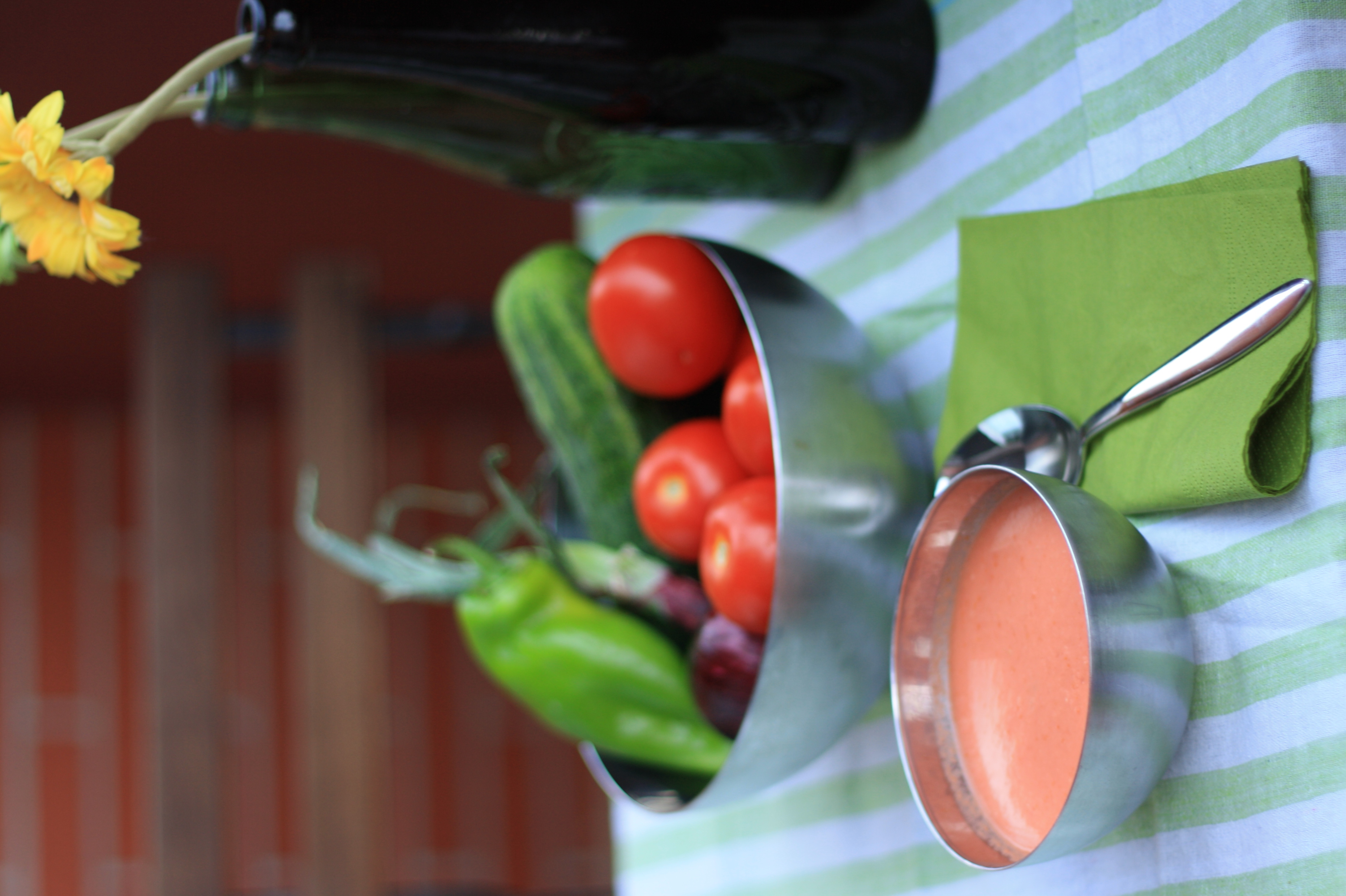 Termina el verano, o por lo menos el periodo vacacional para la mayoría, y yo comienzo mi dieta más estricta que he hecho en los últimos años… Así que voy a aprovechar tomates del pueblo para hacerme un gazpacho ligero, de hecho, el más ligero que he tomado en mi vida.