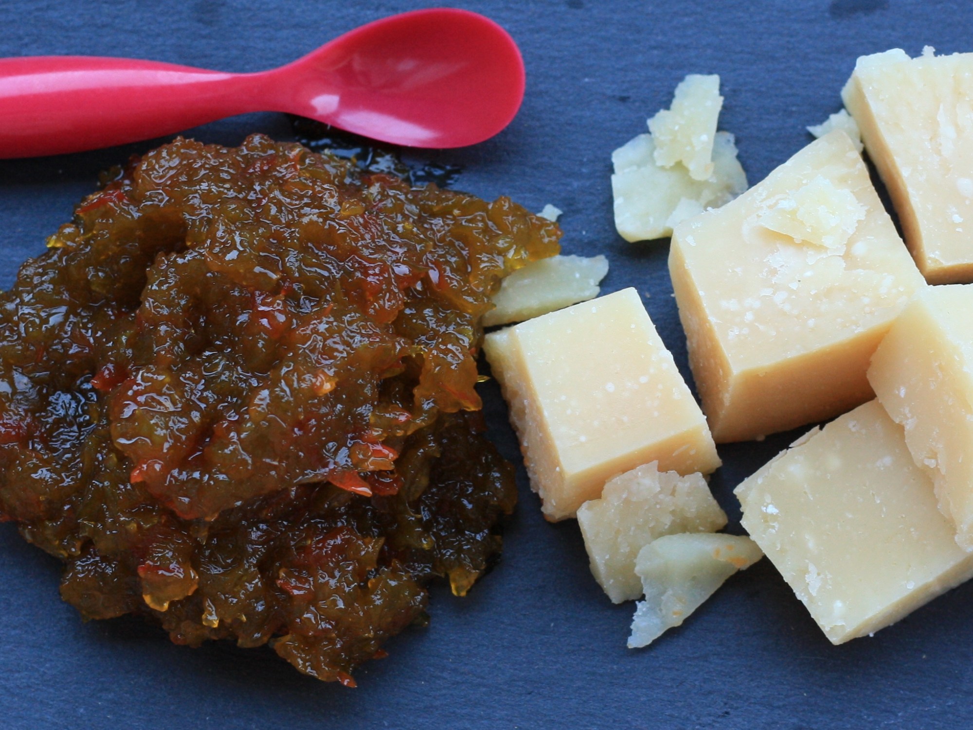 Yo lo degusté con queso parmesano bien curado, y he de decir que esta deliciosa!