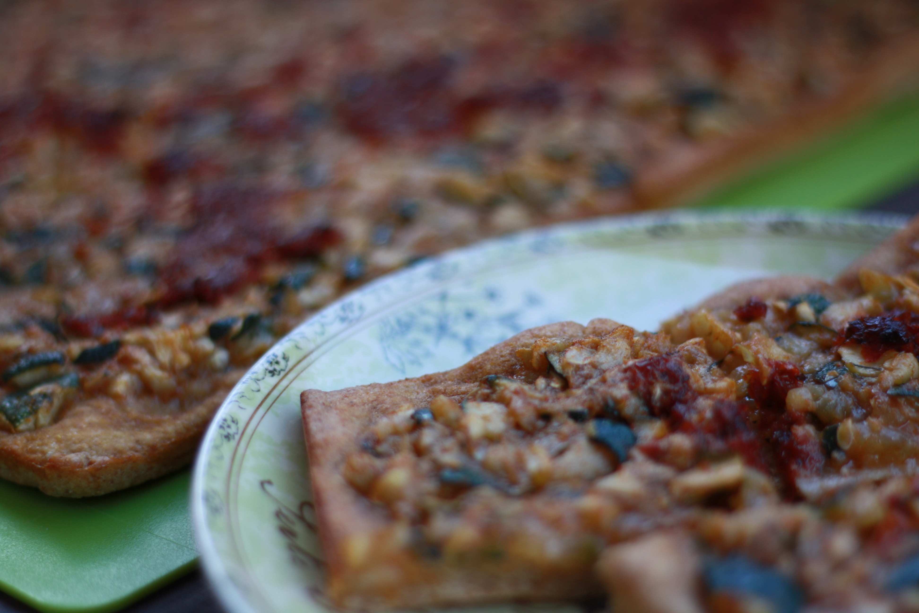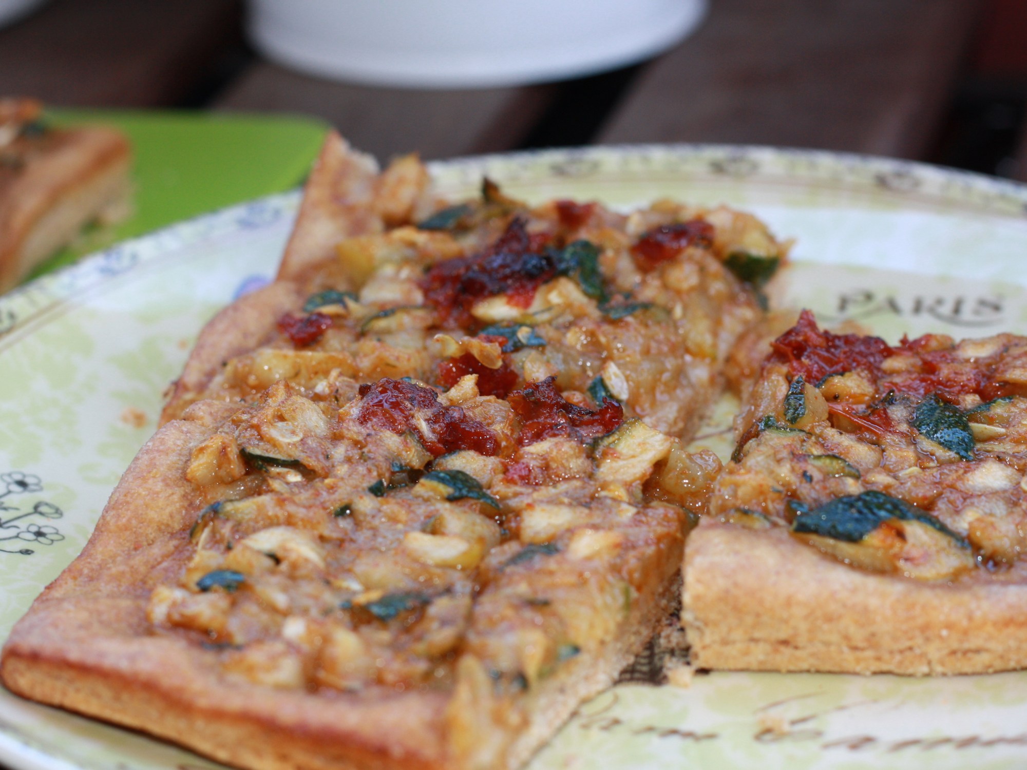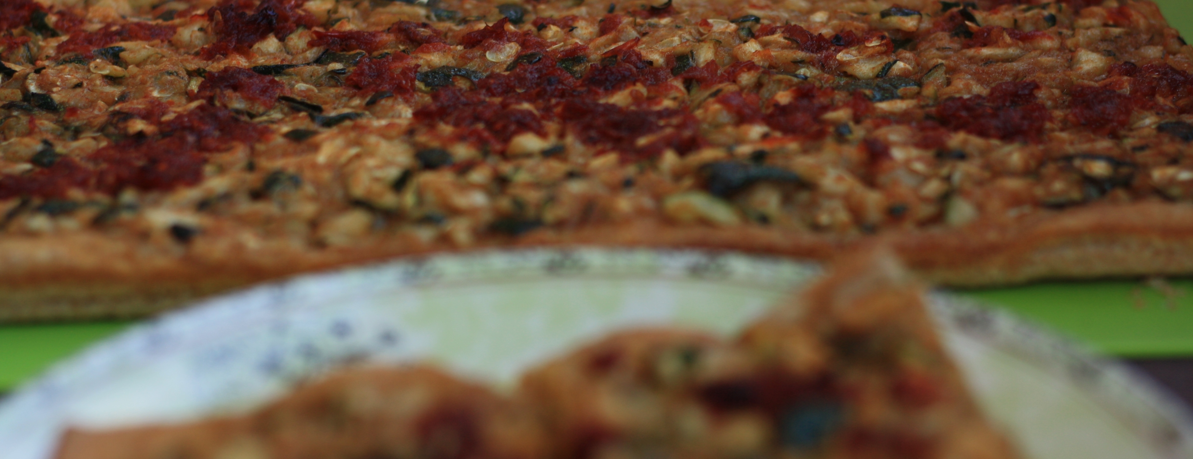 Coca de San Juan (1)Ponemos en el vaso el tomate seco, el calabacín, el aceite, la sal y el pimentón. Programamos 3 seg, vel-4.