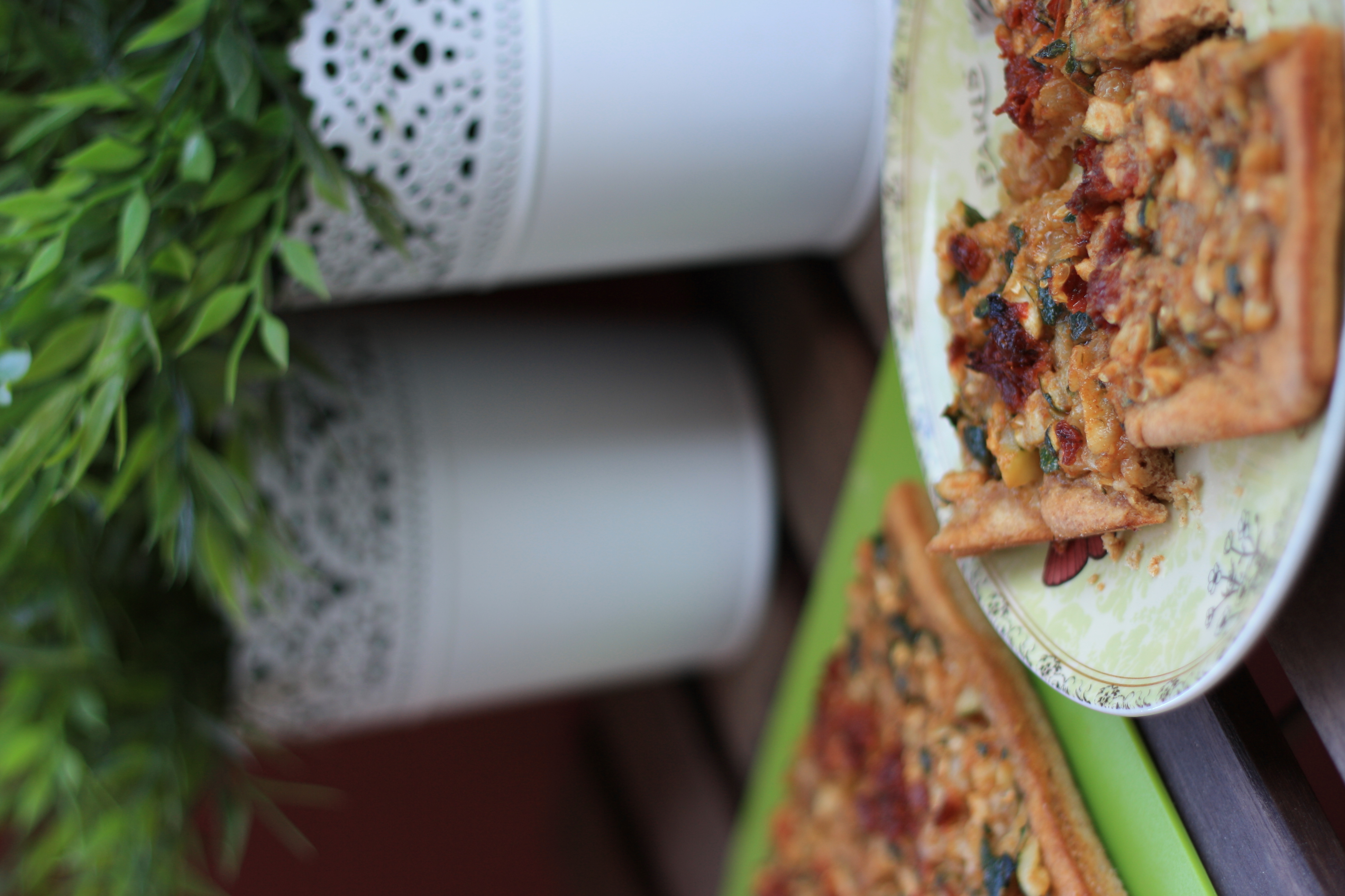 Cubrimos la masa con las verduras reservadas y horneamos durante 20 min aproximadamente.