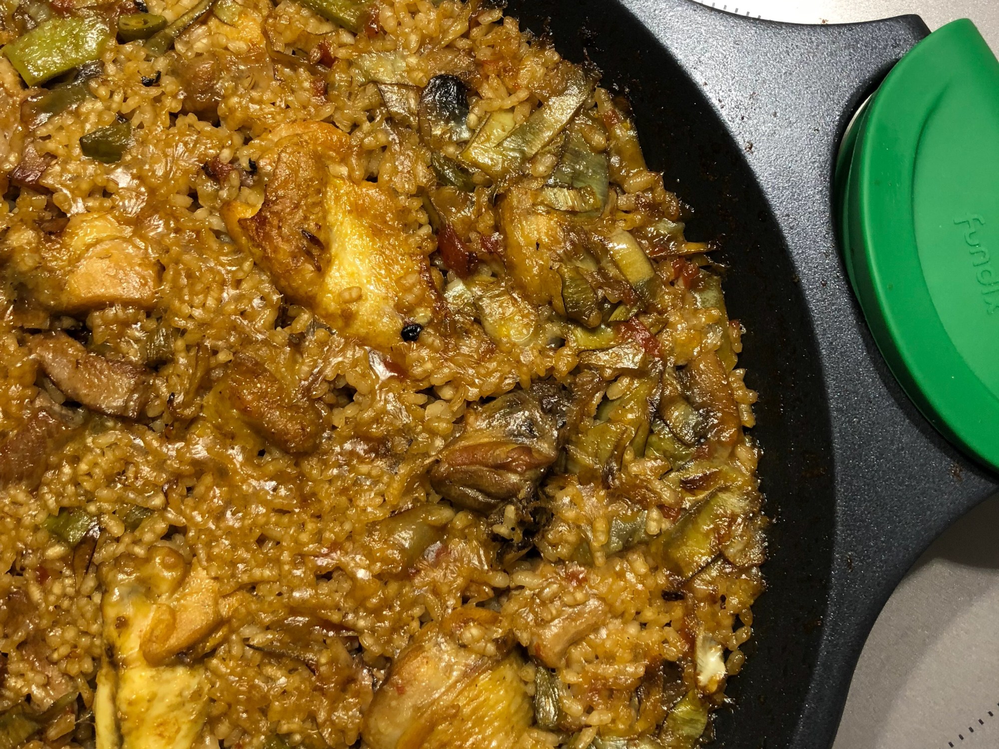 *Yo utilizo la sartén de fundix que sirve para vitrocerámica y horno. Es súper útil para cocinar el arroz y darle el último toque de horno quitándole las siliconas de las asas. Es genial y el sabor del arroz queda perfecto!