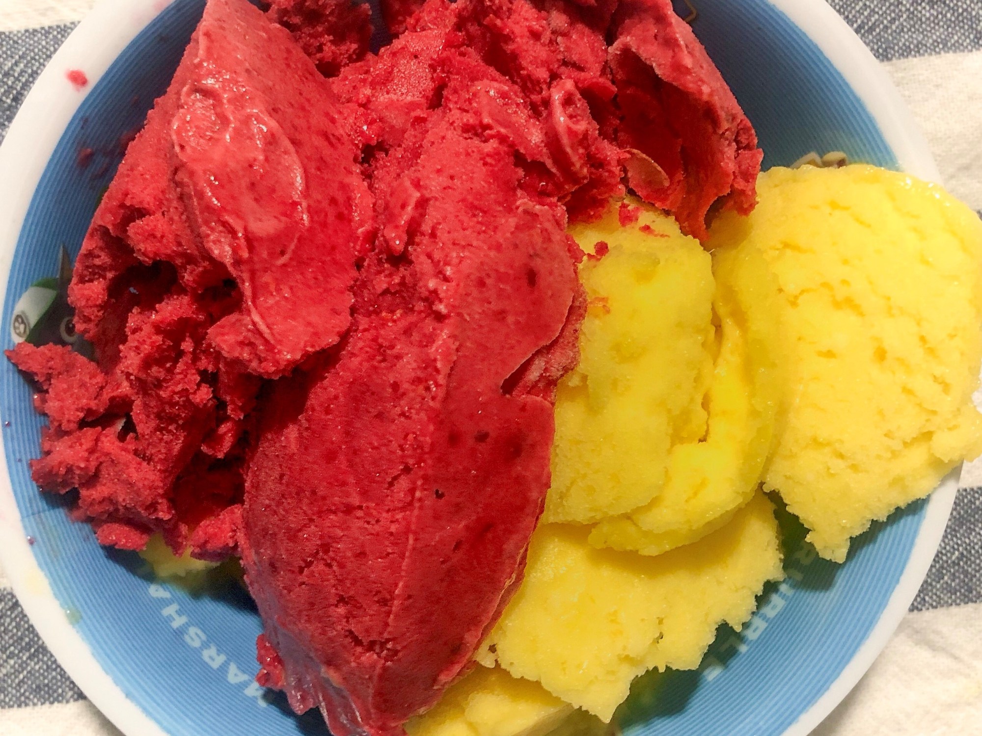 - 300gr de fruta congelada. En mi caso hice dos helados – mango y frutos rojos.