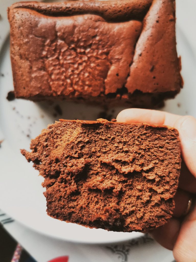 Cuando tengamos una masa cremosa y homogénea, la vertemos sobre un molde engrasado (yo he usado uno redondo de 15 cm) y horneamos 25 minutos a 180º y luego bajamos la temperatura del horno a 160º y lo horneamos 10 minutos más.