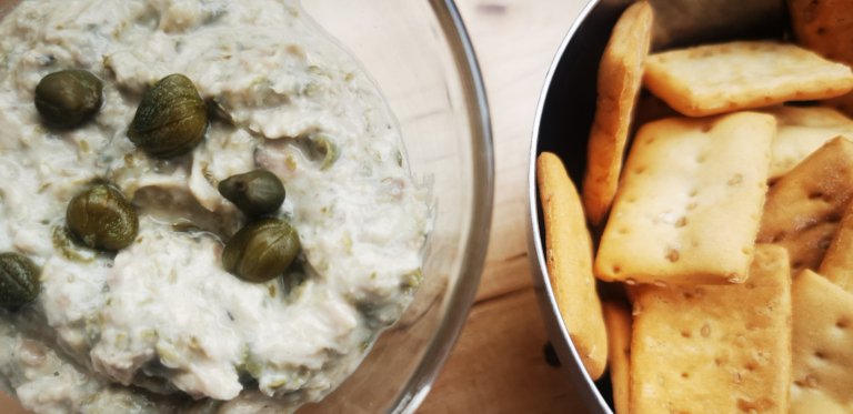 Primero separamos una cucharada de alcaparras. Luego, los ingredientes restantes los pasamos por la batidora. Servimos la pasta en un bol y la decoramos con las alcaparas que habíamos separado previamente. Y a disfrutar!