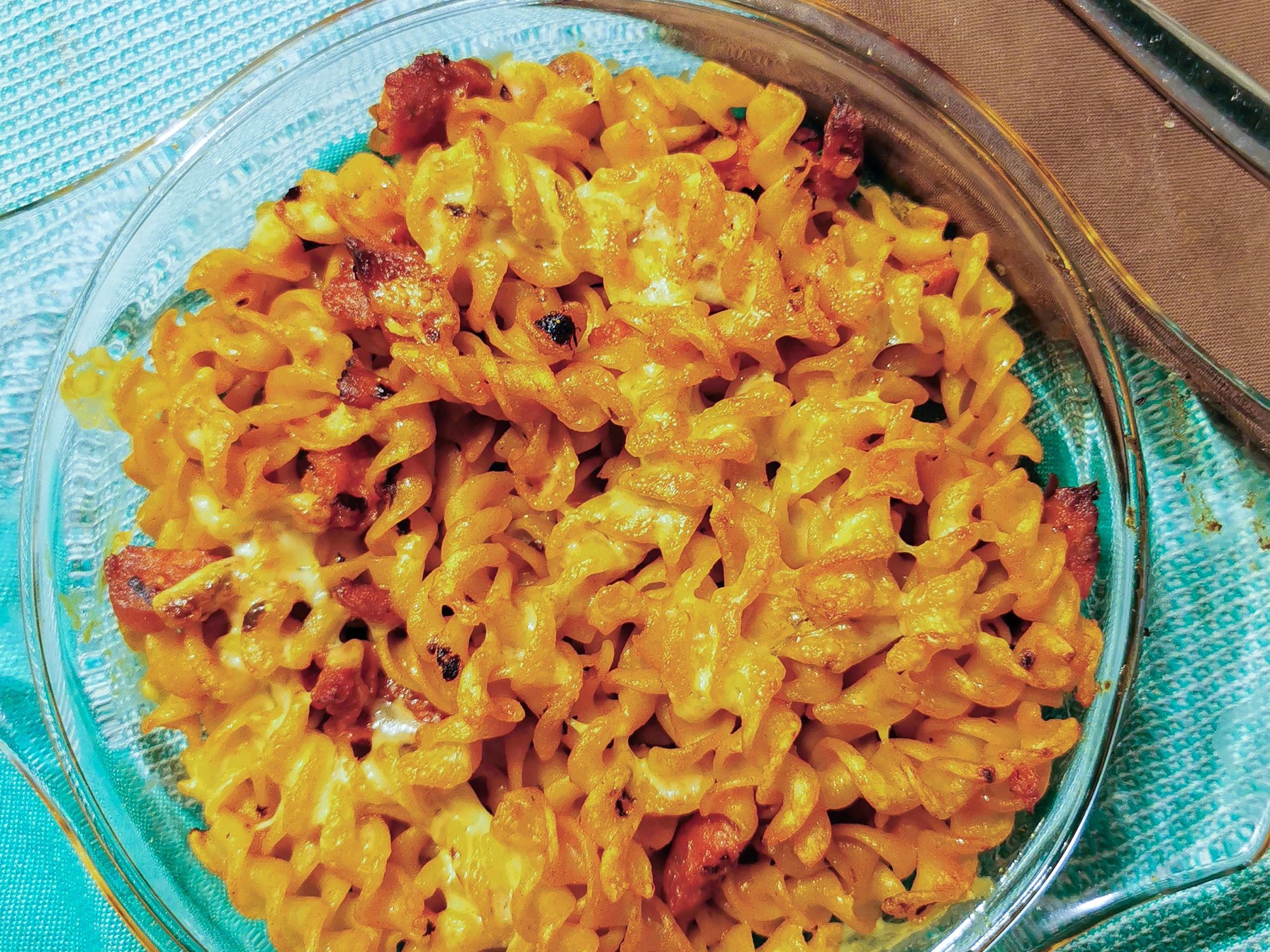 El fin de semana me vine arriba y preparé un buen plato de pasta para todos y lo hice al horno. La verdad es que le da un toque súper rico por lo que merece la pena encender el horno y dedicarle un poco más de tiempo.